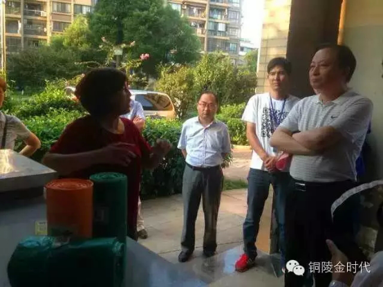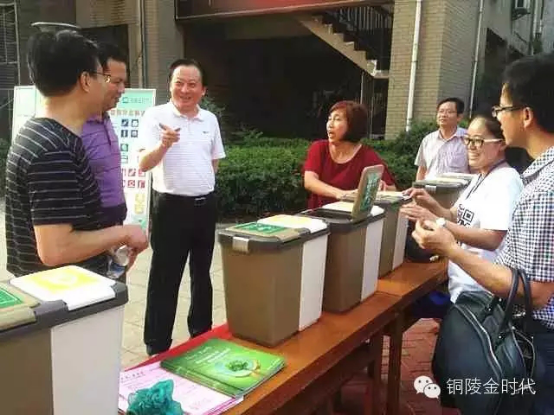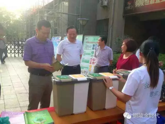 2015年9月9日下午,省住建廳領導來銅陵世紀曙光苑調研智能垃圾分類項目,省住建廳城建處處長蔡立新、副處長劉以舜、市城市管理行政執(zhí)法局局長汪源、市環(huán)衛(wèi)處、物業(yè)公司相關負責人參加調研、指導。