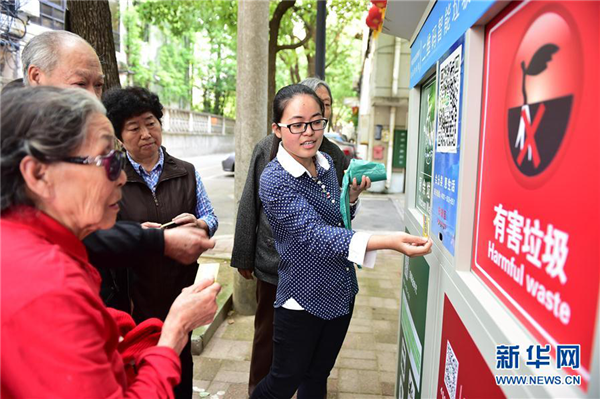 當日,安徽合肥市首個智能垃圾分類項目在廬陽區(qū)啟動。參加首批試點的小區(qū)居民可憑發(fā)放的智能卡,通過二維碼智能垃圾袋發(fā)放機領取垃圾袋和二維碼,居民可以把廚余垃圾與金屬、紙類、塑料類等其他垃圾進行分類分裝,然后在垃圾袋貼上對應的二維碼,通過掃描投放到不同的垃圾收集箱中,進行垃圾分類投放。 新華社記者 劉軍喜 攝