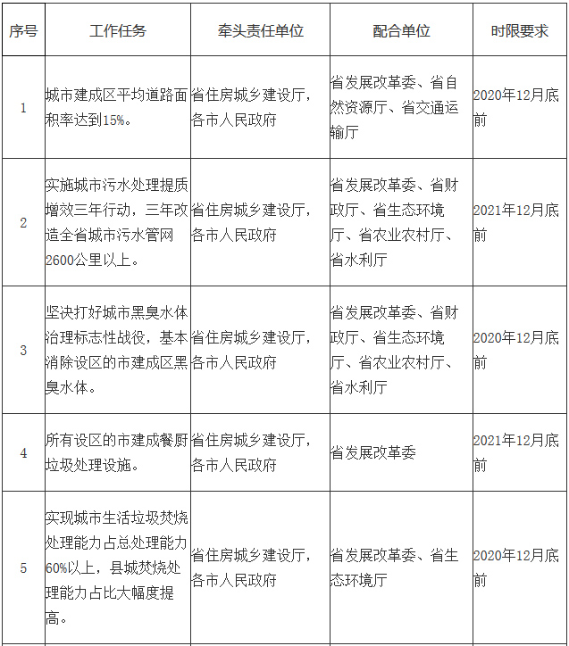 (六)加強(qiáng)城市污水處理設(shè)施建設(shè)。實(shí)施城市污水處理提質(zhì)增效三年行動(dòng),基本完成城市污水處理廠提標(biāo)改造,基本實(shí)現(xiàn)建成區(qū)無(wú)生活污水直排口,基本完成市政雨污錯(cuò)接混接點(diǎn)治理及破舊管網(wǎng)修復(fù)改造,持續(xù)推進(jìn)雨污分流改造,三年改造城市污水管網(wǎng)2600公里以上。堅(jiān)決打好城市黑臭水體治理標(biāo)志性戰(zhàn)役,到2020年年底,基本消除設(shè)區(qū)的市建成區(qū)黑臭水體。