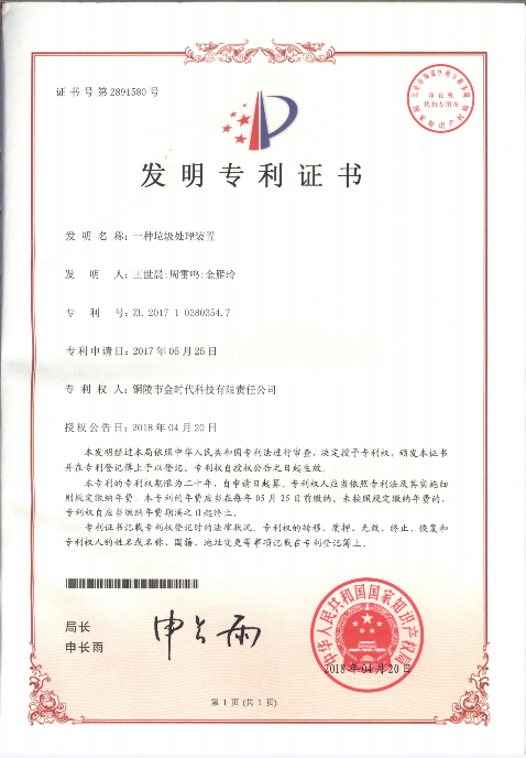 發(fā)明專利(一種垃圾處理裝置)