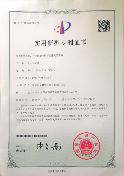 實(shí)用新型專利(一種廚余垃圾智能防臭消毒箱)