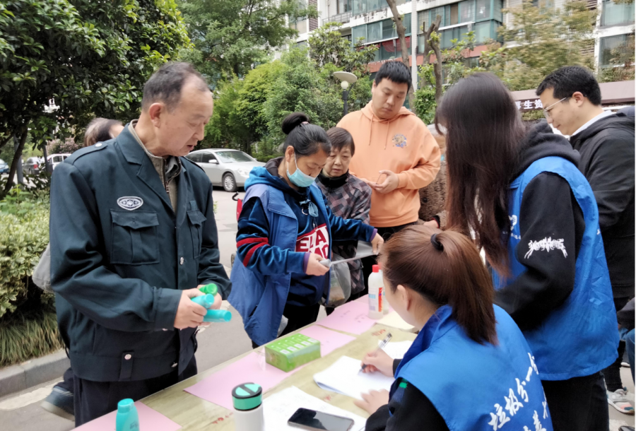 通過PPT講解,動(dòng)畫視頻播放,互動(dòng)問答相結(jié)合的方式。同學(xué)們化身青年志愿者,發(fā)放垃圾分類宣傳單頁,幫助銅陵社區(qū)居民學(xué)會(huì)垃圾分類正確投放。